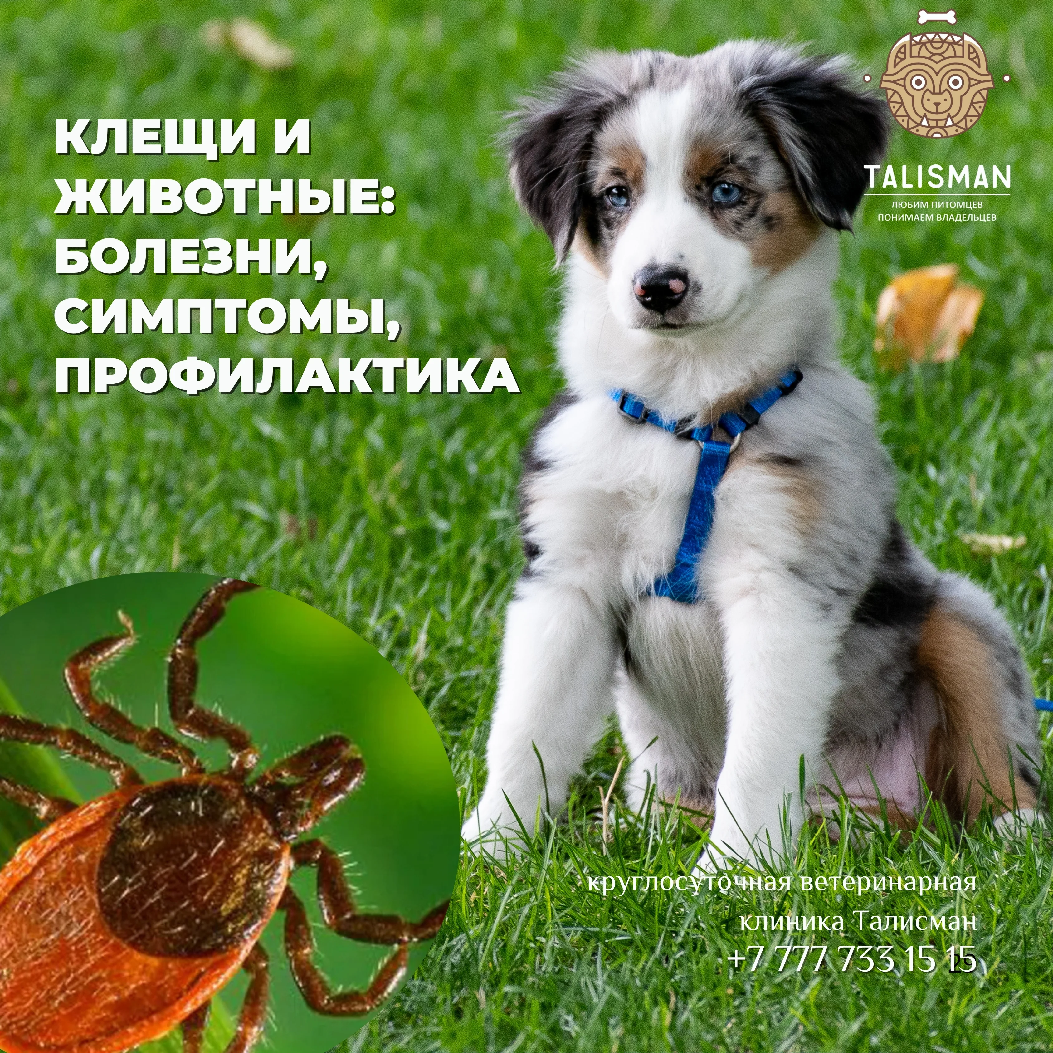 Первый и самый главный совет, который может дать ветврач в Алматы – внимательно осматривайте собаку (и любого другого питомца) после выгула или поездки на природу. Клещи любят присасываться в незаметных местах, а поскольку их слюна обладает обезболивающим эффектом, то укус может долго оставаться незамеченным